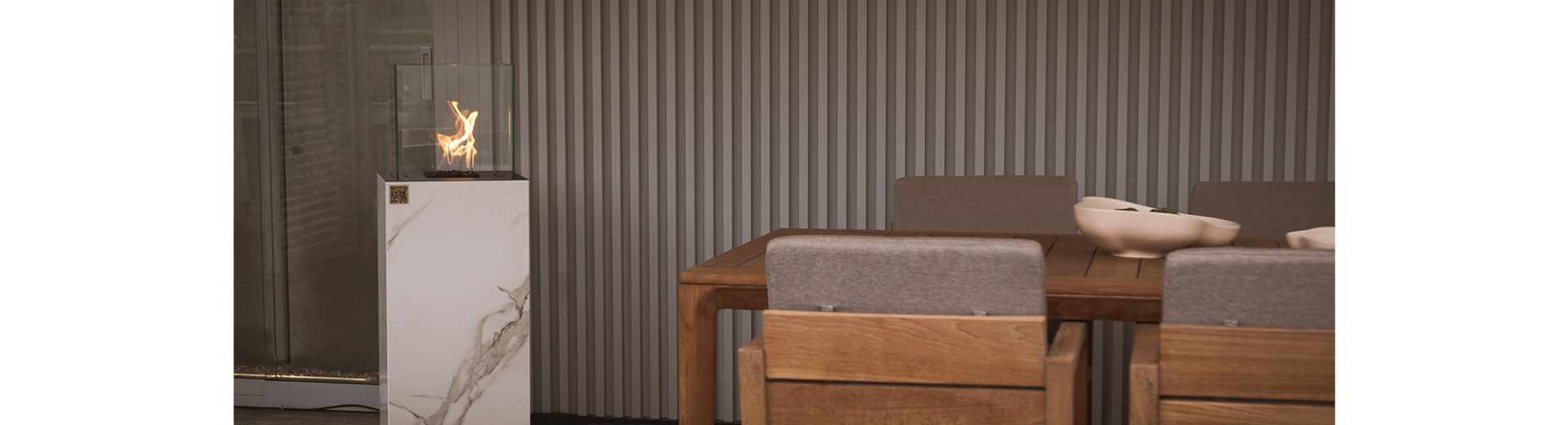 CAMINETTO BEV FREESTANDINGIl primo caminetto BEV per uso esterno. Un’alternativa ai caminetti a gas utilizzati in giardini, cortili, hotel o ristoranti. Le opzioni di rivestimento non convenzionali di Cosentino – Daze, Laurent e Kreta – aggiungono un tocco di lusso all’ambiente.