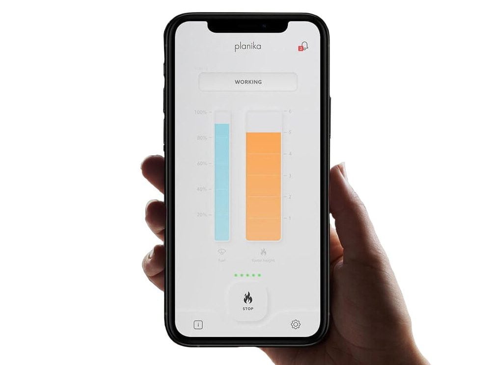Le impostazioni del camino possono essere gestite comodamente tramite pannello di controllo LCD touch, telecomando, app mobile o integrazione con sistemi Smart Home.