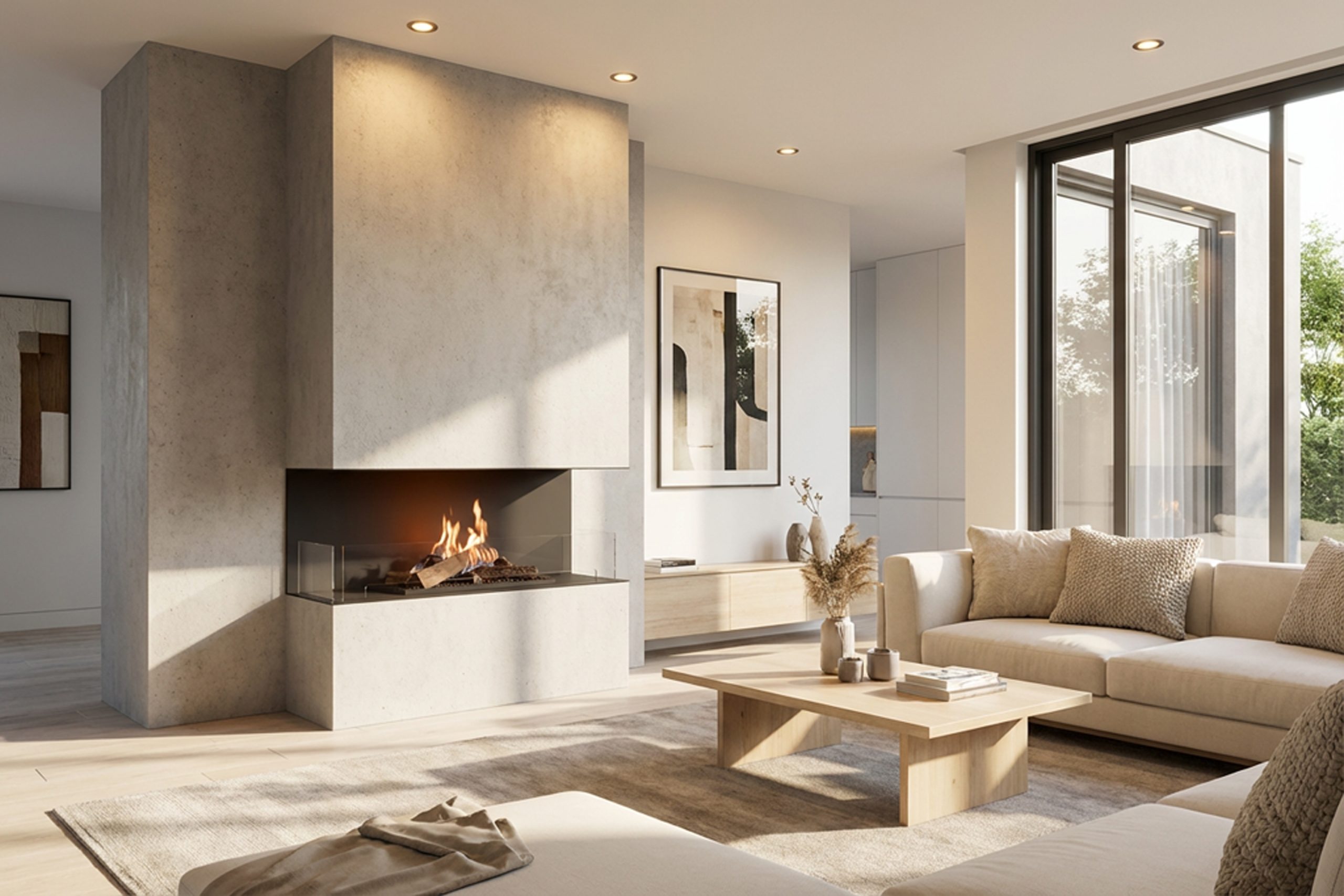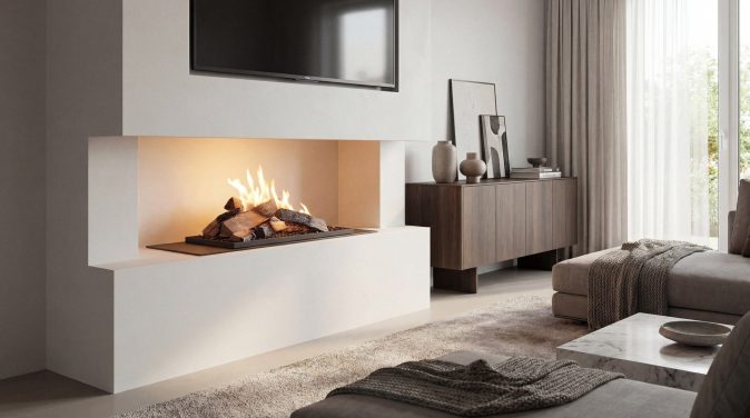 Scopri Forma — un rivestimento per camino pronto all’uso che consente l’impiego sicuro di materiali di finitura combustibili ed elimina la necessità di incassare il televisore nella parete, offrendo una maggiore libertà progettuale.