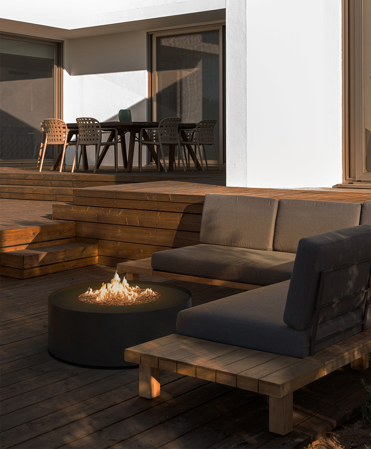 Per controllare la fiamma utilizza il pannello Wall Switch oppure aggiungi un telecomando. Scegli il modulo WiFi per gestire comodamente il caminetto dal divano. Questo caminetto a gas da esterno è compatibile anche con il sistema Smart Home.