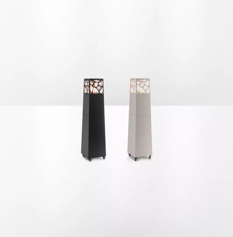 Questa collezione è dedicata a chi cerca soluzioni per arredare con stile un giardino o un terrazzo. La forma verticale del caminetto trasforma completamente l'aspetto delle fiamme.