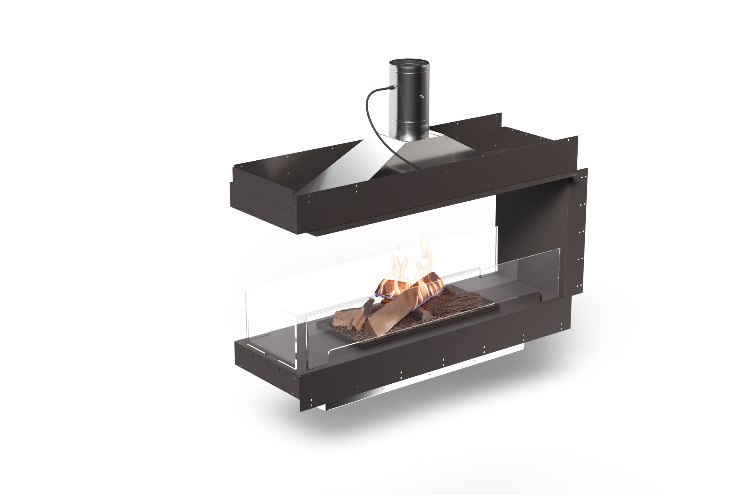 FORMA con collegamento alla canna fumaria viene fornita con un involucro dedicato di tipo zero clearance, progettato per proteggere le strutture circostanti e consentire un’installazione sicura anche in prossimità di materiali combustibili.