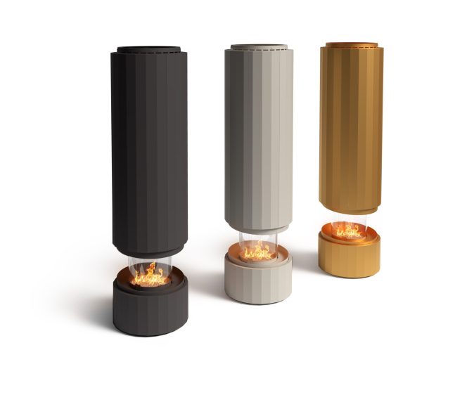 Il Pillar è disponibile in tre finiture: scegli il classico Jet Black, il minimalista Silk Grey o l’elegante Metallic Gold per adattare al meglio il camino al tuo progetto.