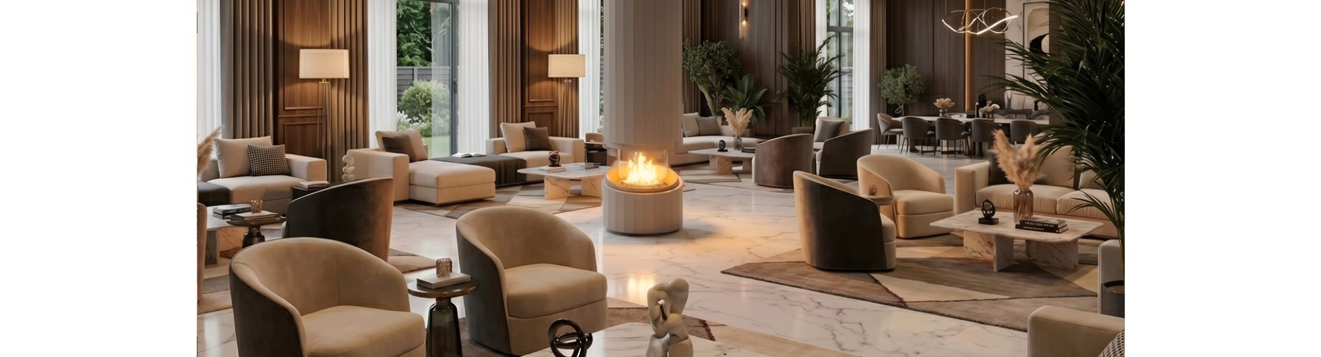 CON LA TECNOLOGIA COMET AUTOMATIC BEV®Il camino sospeso Pillar è progettato per diventare il punto focale di qualsiasi interno. Si adatta perfettamente a hall di hotel e ampi soggiorni, offrendo un’autentica esperienza del fuoco e un effetto visivo moderno grazie al suo bruciatore a forma di stella, alla fiamma intensa, al tubo superiore e alle protezioni in vetro che valorizzano il fuoco scintillante. Alimentato a bioetanolo, è dotato di un sistema di rifornimento automatico e può essere controllato tramite pannello touch, telecomando o app mobile. Disponibile in tre finiture colore per adattarsi al design del tuo progetto.